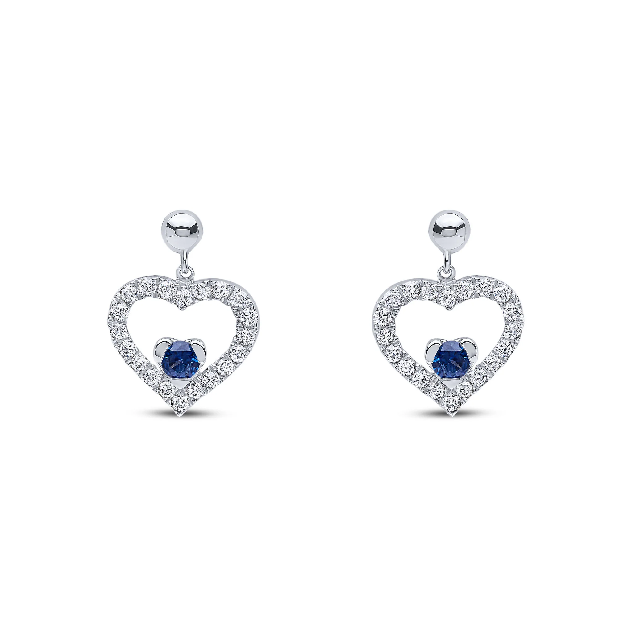 18CT White Gold Sapphire & Diamond Heart Drop Earrings