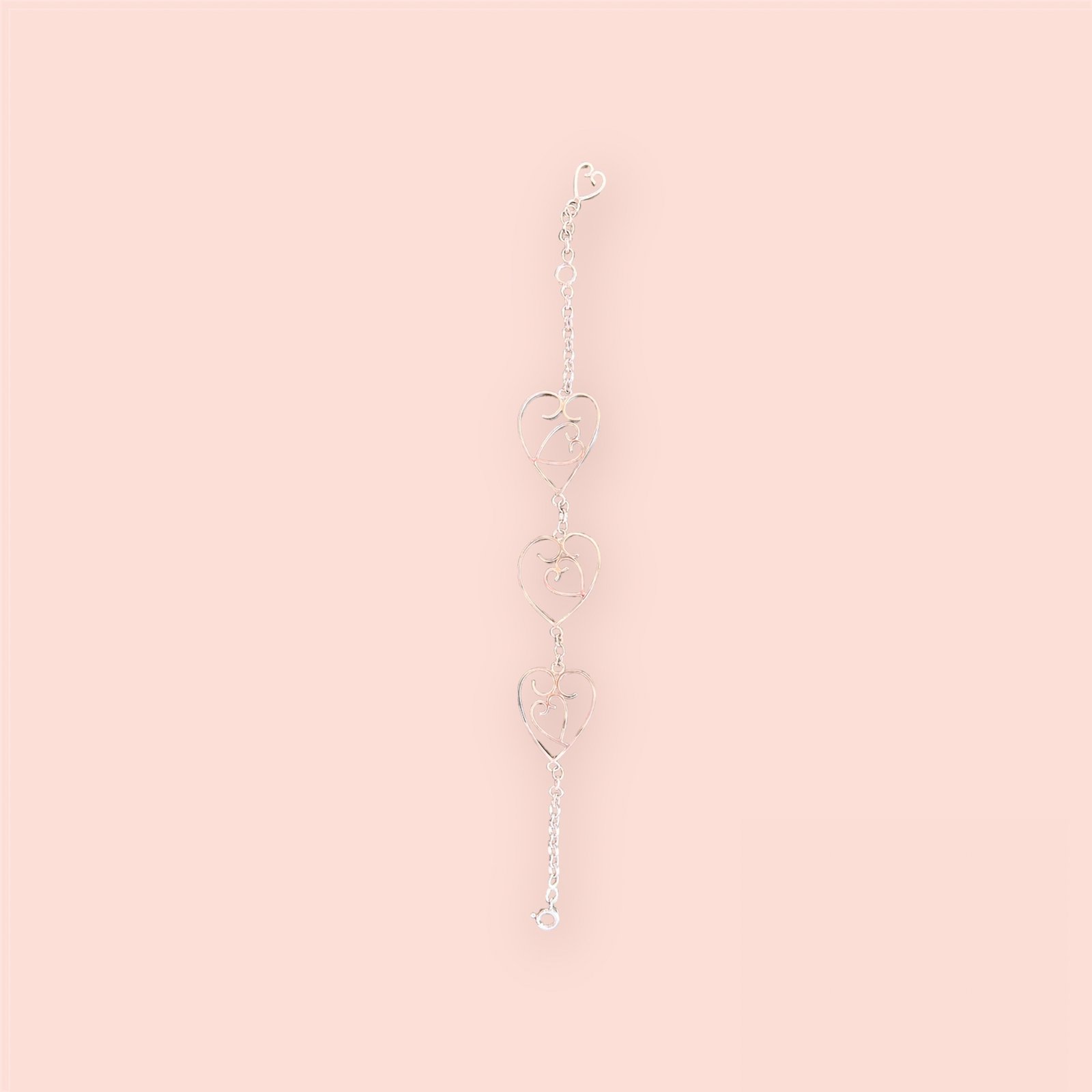 The bracelet features three beautiful heart elements, each linked to create a flowing, symmetrical centrepiece that sits perfectly on the wrist. This design symbolises profound connection, making it an ideal gift or a meaningful personal treasure.