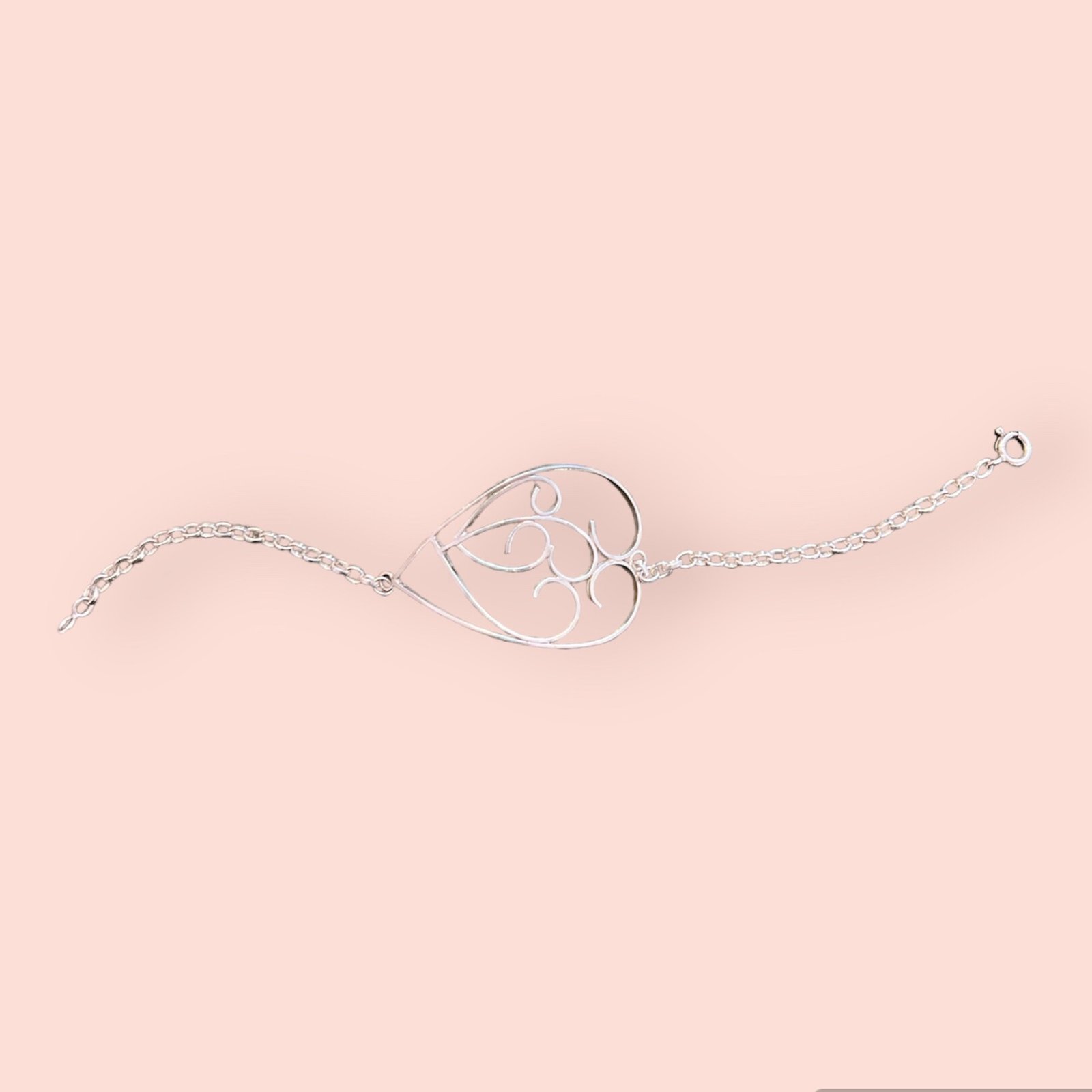 This bracelet captures the essence of the revered Portuguese Viana Heart, an historic symbol of love, strength, and faithfulness, reinterpreted for the modern wearer. The central open-heart motif features graceful, fluid scrollwork, creating a lightweight, airy aesthetic on the wrist.