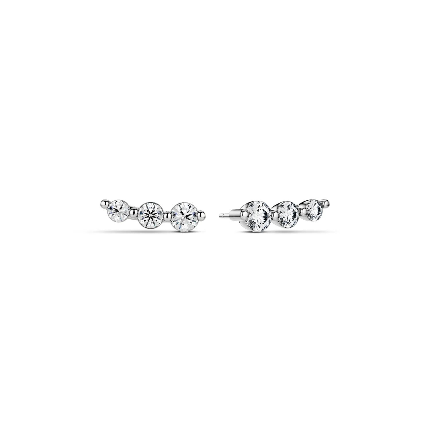 Experience the epitome of Scandinavian elegance with the Tiara Piccolo Earrings. Designed to mimic the graceful arch of a tiara, these delicate studs feature a graduated trio of round brilliant-cut diamonds that follow the natural curve of your earlobe.